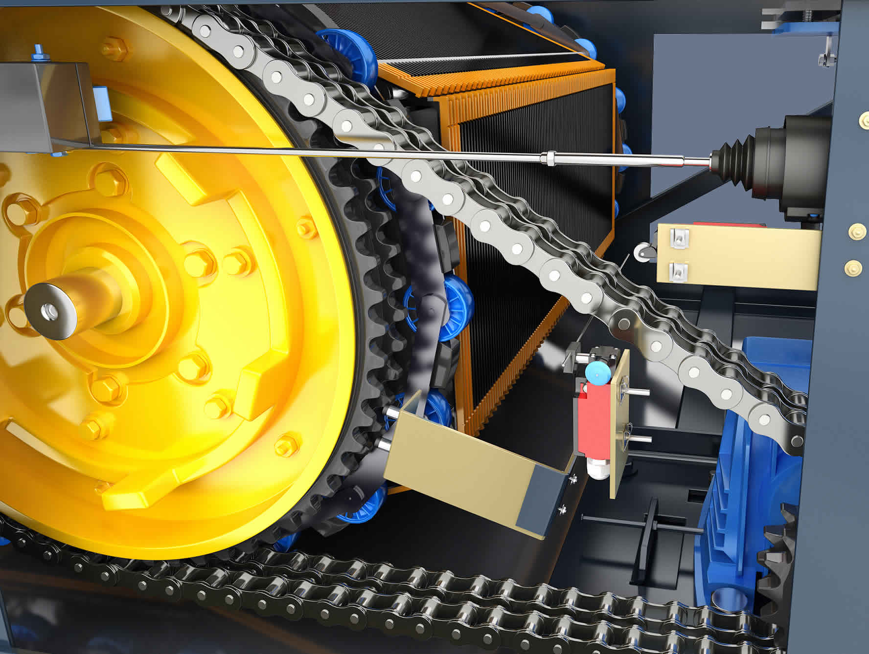 梯路全程導(dǎo)軌導(dǎo)向,增加梯路運(yùn)行的一致性